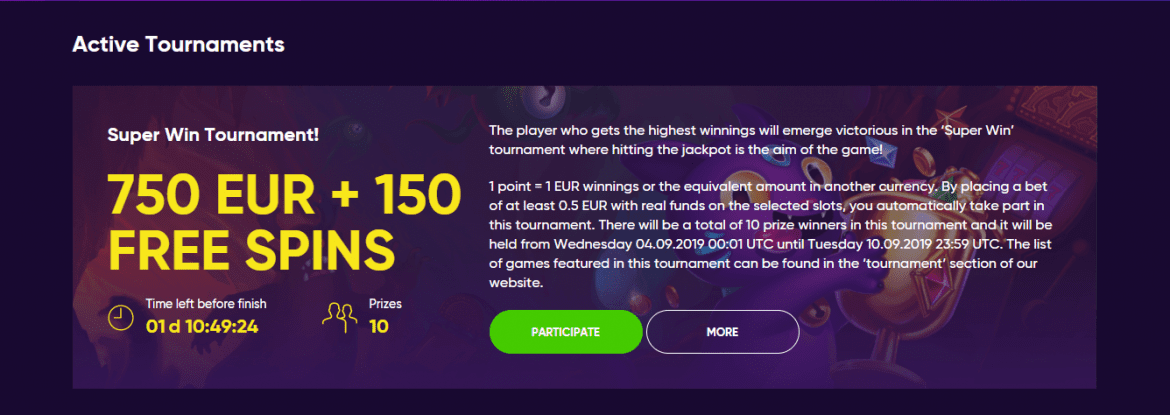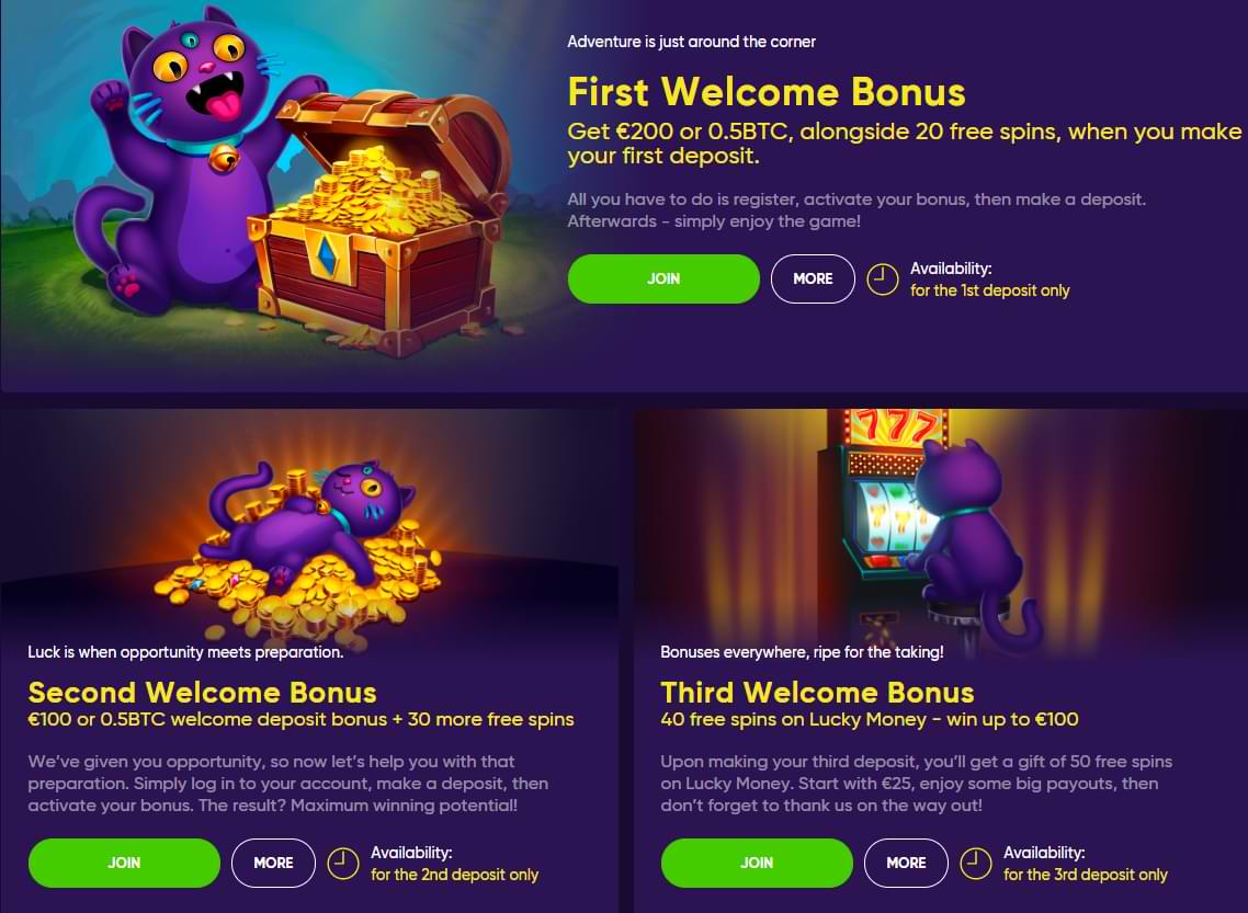 Há Vários ótimos bônus e promoções oferecidas aqui, as quais podem ver você obtendo suas moedas práticas de bitcoin para brincar. A mais notável dessas promoções é o bônus de boas-vindas de três partes, onde você pode optar por obter seu Grab € 300 ou 1BTC, além de uma carga de giros gratuitos para inicializar!