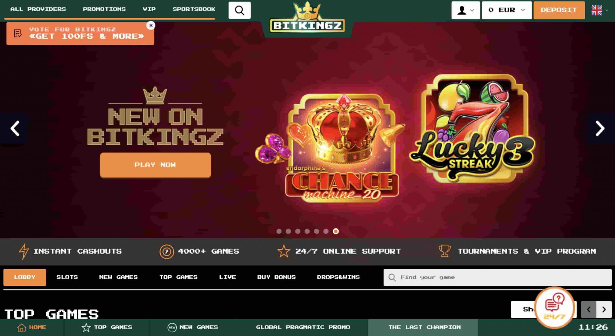 Se você precisar de qualquer assistência, o atendimento ao cliente da Bitkingz está pronto para ajudá -lo. Disponível 24/7 em inglês e outros idiomas, você pode entrar em contato usando a conveniente opção de bate -papo ao vivo. Os tempos de espera geralmente não são mais do que alguns minutos, e descobrimos que os membros da equipe são úteis e conhecedores. Como alternativa, você pode entrar em contato com o suporte ao cliente por e -mail ou formulário de contato.