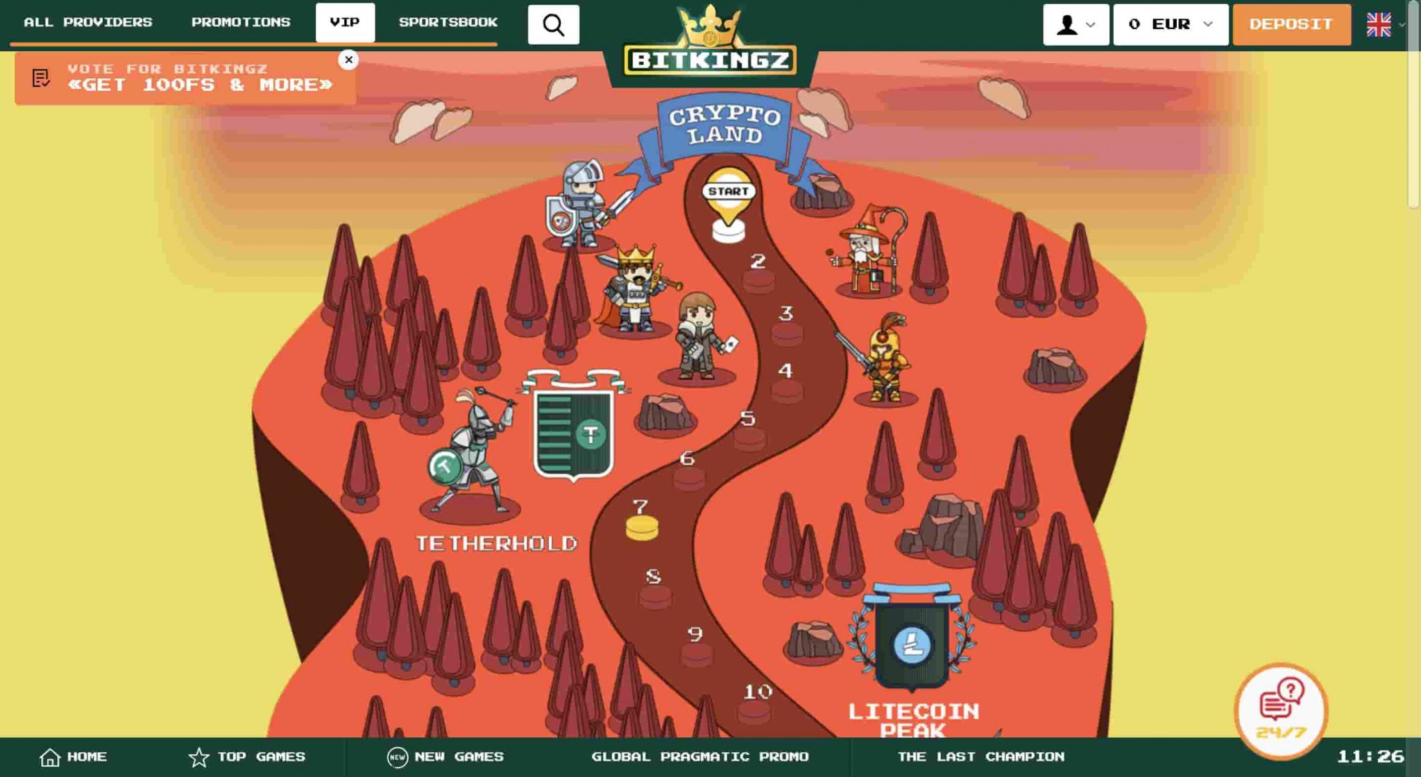 O Bitkingz VIP Club é uma combinação divertida de um programa de fidelidade e uma aventura divertida em si. Ao registrar uma nova conta Bitkingz, você terá a oportunidade de escolher um personagem para representá -lo. Ao ingressar no clube VIP, você vai Comece a receber o Compoints Toda vez que você coloca uma aposta de dinheiro real. O progresso através do clube o recompensa com um pacote de recompensas cada vez mais generoso, culminando em 15% de reembolso semanal e 300 rodadas gratuitas.