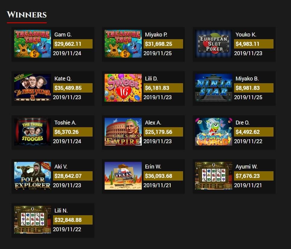 O valor do bônus deve ser apostado no mínimo 50 vezes para jogos de caça-níqueis (ou seja, slots de vídeo, slots de 3 rolos, keno, bingo e cartas de arranhões) ou jogos de cartas (videopoker, Blackjack, Blackjack Multi-Hand, tri-card Poker, três cartas rummy e Texas Hold'em Bonus Poker) e 60 vezes para jogos de roleta (roleta americana e européia com apostas externas desativadas). As apostas feitas em jogos excluídos anularão todos os ganhos gerados jogando no cassino.