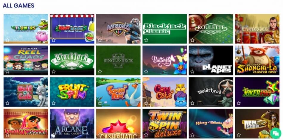 Como dissemos no início de nossa revisão, o Casinobtc segura Mais de 1000 jogos Em seu repertório, o que é bastante variedade para praticamente todos os jogadores. O número real de jogos é um pouco acima 1400 Jogos, com mais 1300 deles sendo slots, O que é uma ótima notícia para seus fãs de slot! O restante dos jogos inclui bacará, blackjack, e roleta.