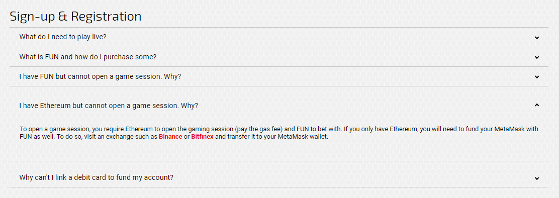 Bem, antes de tudo, você precisará criar uma conta no Casinofair, após o que precisará criar uma carteira Funfair, que faz parte da sua conta (essencialmente, sua banca no Casinofair). Então você terá que depositar diversão na sua carteira de diversão e pronto.
