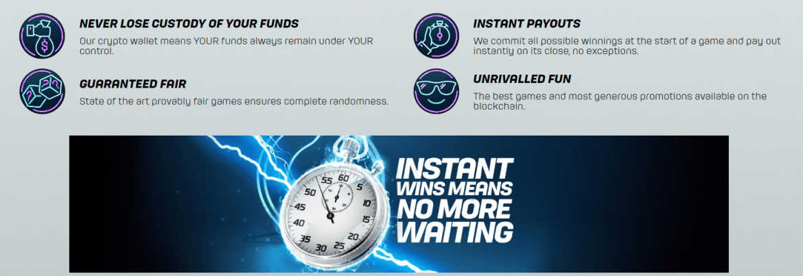 Oferecendo os jogos mais rápidos do quarteirão que provavelmente são justos, juntamente com pagamentos instantâneos e a vantagem de nunca perder o controle sobre seus fundos, este é um operador que vai além para garantir que os jogadores sejam tratados com uma experiência de jogo on -line mais avançada.