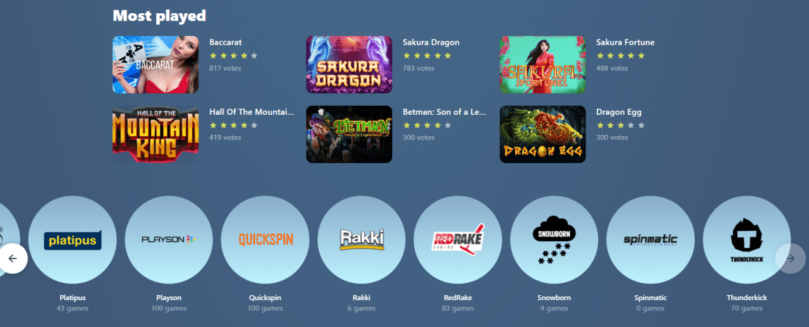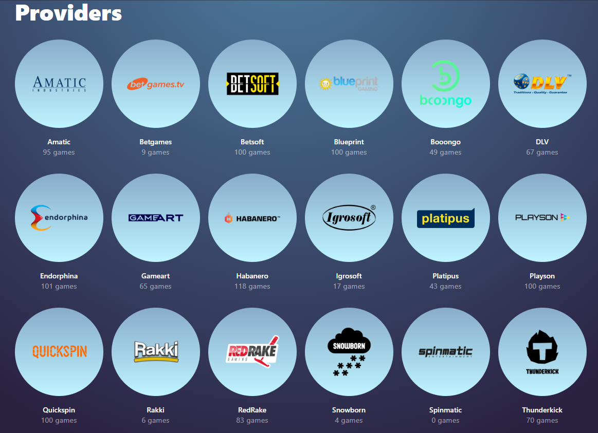 Entre o Fornecedores de jogos de primeira linha O cassinoína usa, pode -se encontrar jogos de plano, cuja história na indústria de jogos se estende até 1957, quando se especializaram em fazer slots físicos; Thunderkick, um nome jovem no negócio que sempre faz jogos de primeira linha; Quickspin, outro nome relativamente jovem que cria continuamente slots fantásticos; E por último, mas não menos importante, Betsoft, um nome bem conhecido que dificilmente precisa de introduções.