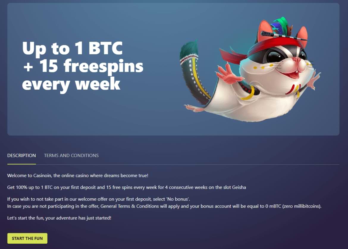 Primeiras coisas primeiro, o que há para você quando você se junta ao cassino? Bem, seu bônus super bem -vindo, é isso! As ofertas de cassinoína um bônus de depósito de 100%, até 1 Bitcoin, nos primeiros depósitos dos apostadores, o que é bastante fantástico; Além desse dinheiro gratuito, o Casinoin dá aos apostadores 15 rodadas gratuitas por 4 semanas, para um total de 60 rodadas grátis!