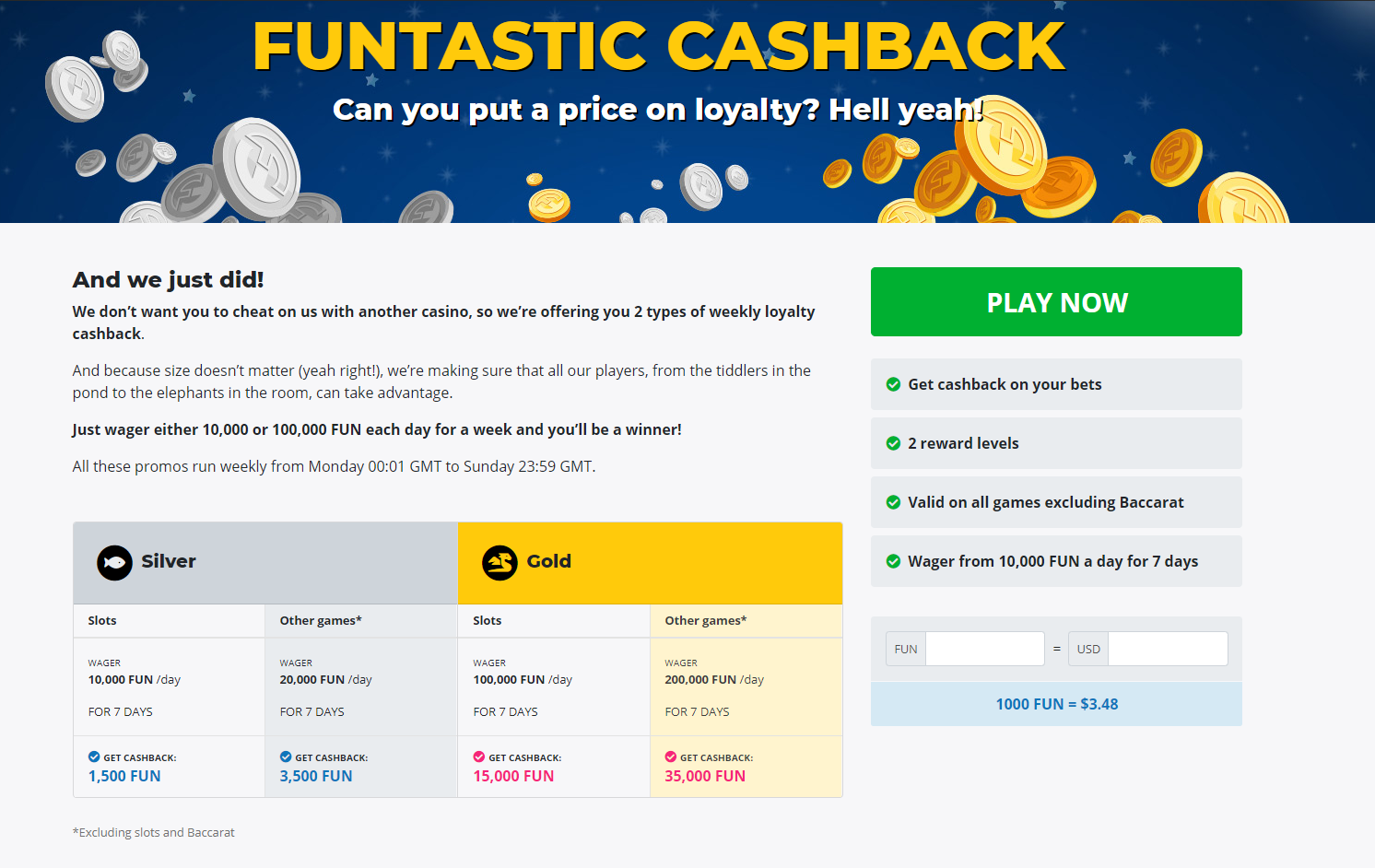 Agora é isso que chamamos de bônus! No entanto, você pode estar se perguntando: o que exatamente é "divertido"? As pessoas obviamente reconhecerão Ethereum como sendo um dos atualmente a maioria das criptomoedas usadas; "Fun", por outro lado, é a criptomoeda proprietária da Funfair (proprietários do criptocasino), sobre a qual falaremos com mais detalhes em nossa seção de pagamento.