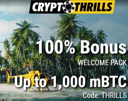 Exclusivamente para usuários de criptografia, Cryptothrills ofereceu um excelente bônus de boas -vindas com 300% até 1000MBTC! E se isso não for suficiente, inscreva -se usando nosso link e inserindo o código abaixo também permitirá que você aproveite 100 rodadas grátis!