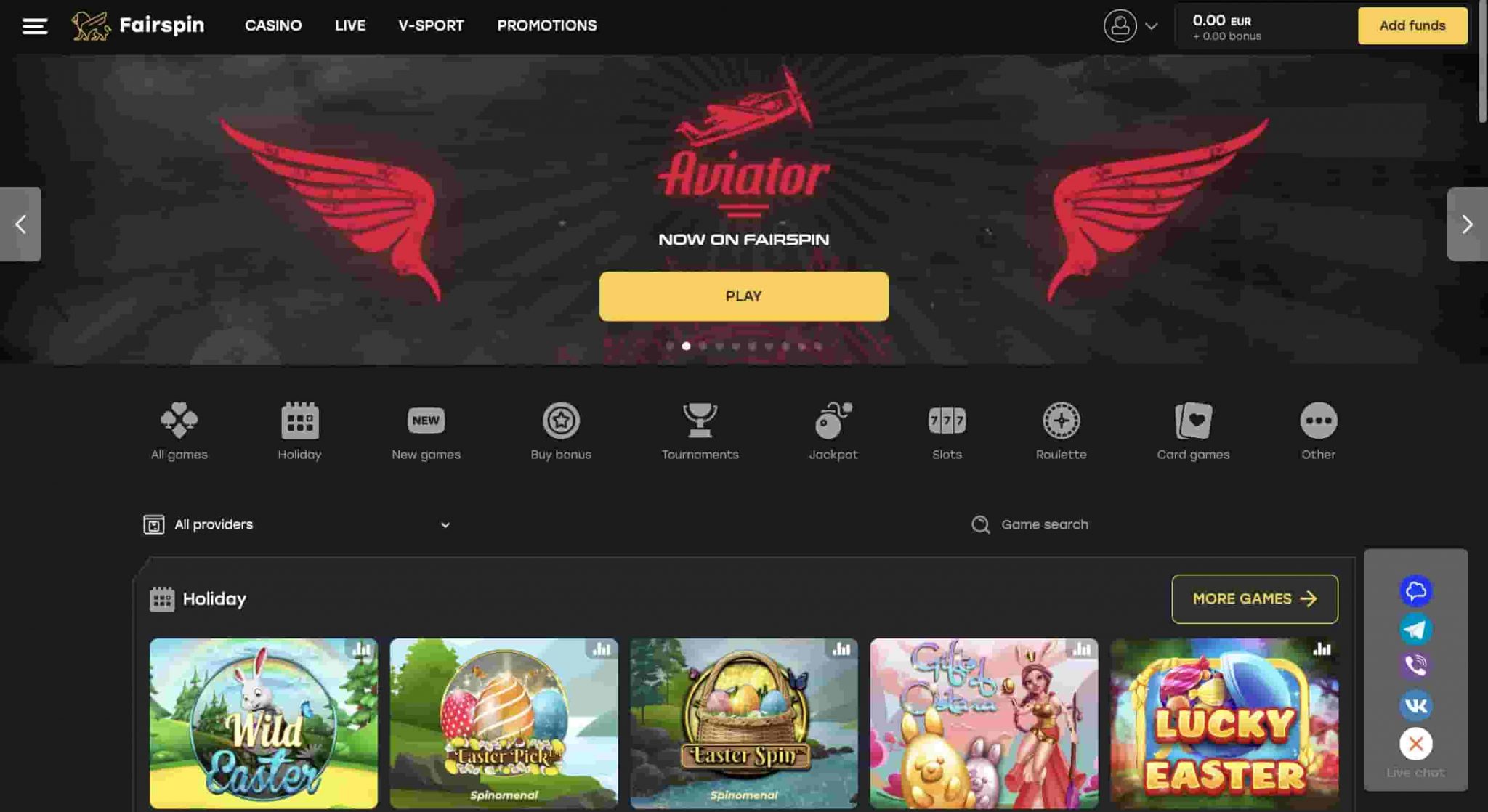 Fairspin se destaca de outros cassinos de bitcoin por oferecendo mais de 20 criptomoedas bem como numerosos pagamentos fiduciários. Ele fornece suporte a bate -papo ao vivo 24/7, além de ajudar os jogadores através do Telegram e outros aplicativos de mensagens.