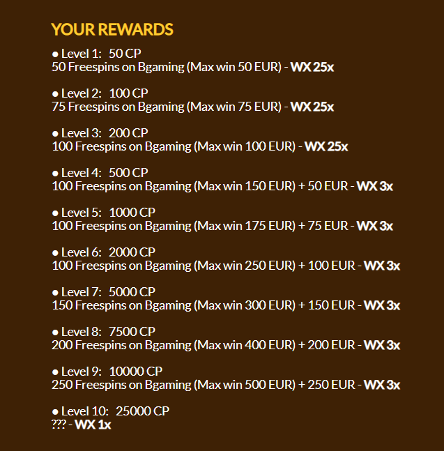 - O bônus final é de 60% de bônus de depósito, também de até € 100, e mais 35 rodadas gratuitas com ele.