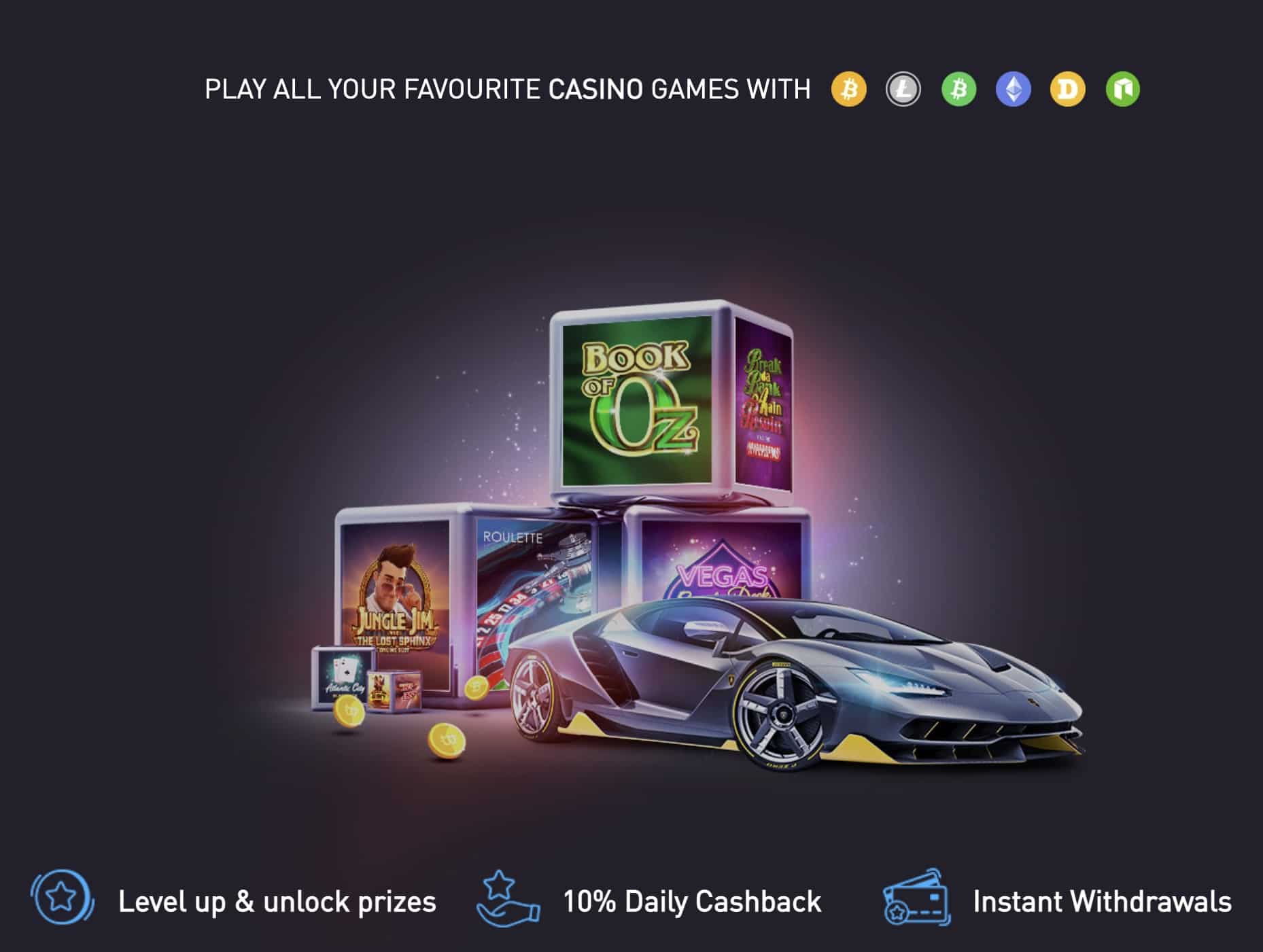 O cassino aceita seis moedas. Estes são Bitcoin, Neo, Bitcoin Cash, Litecoin, Ethereum e Dogecoin.
