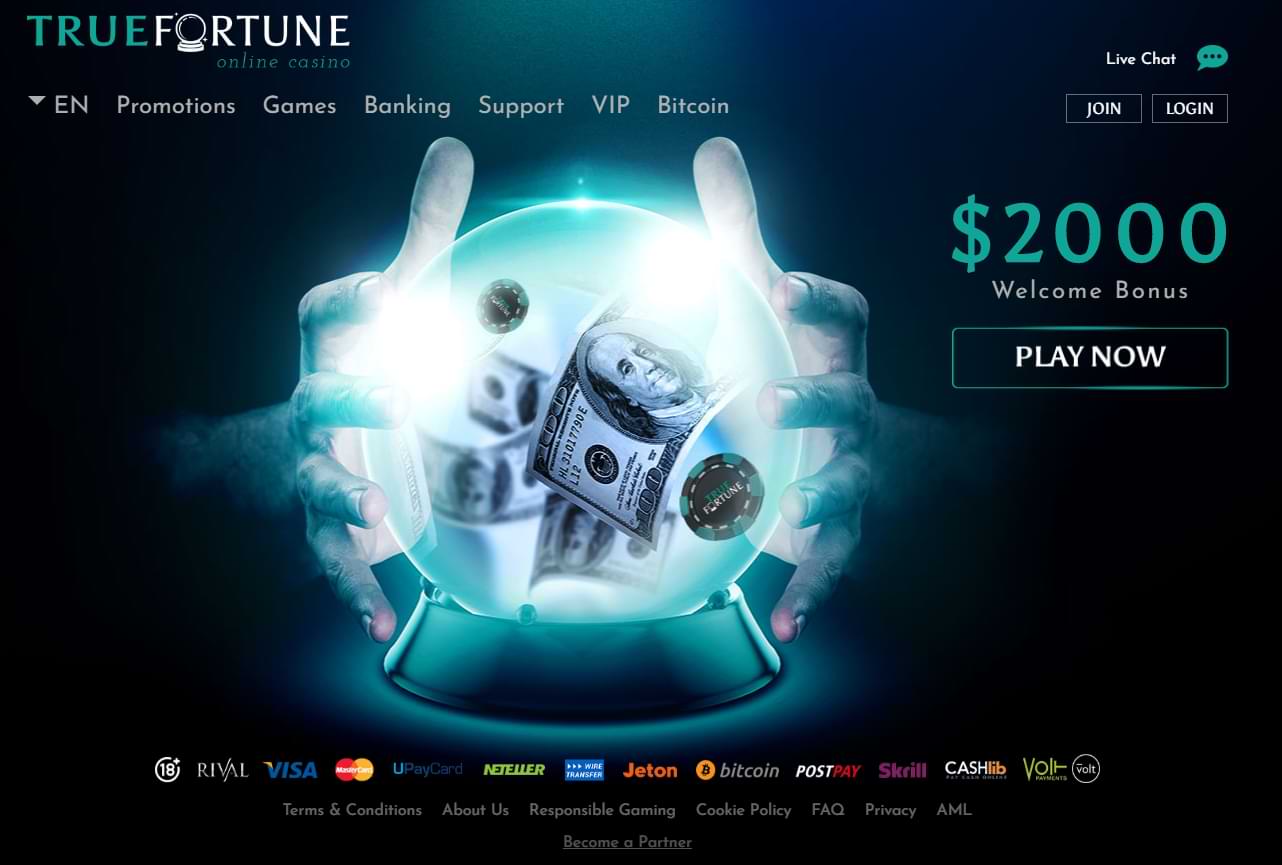 True Fortune Casino, vamos ver! O nome é um pouco bombástico, mas veremos se é algo próximo da verdade. A plataforma oferece um fundo preto simples com tons brancos, cinza e verde -azulado, mas nada que nunca vimos antes. No entanto, os bônus de boas -vindas em oferta parecem realmente atraentes, por isso temos algumas grandes esperanças sobre esse cassino. Falando nisso…