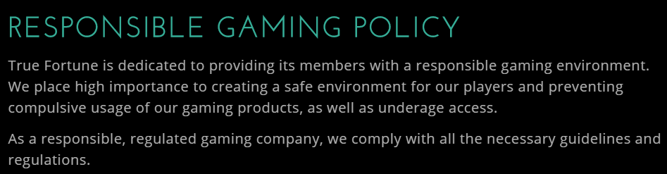 Felizmente, a True Fortune forneceu uma página detalhada sobre jogos responsáveis, o que definitivamente deve ser útil. Além disso, eles fornecem a opção limitar a quantidade de dinheiro gasta em verdadeira fortuna e também para fazer uma pausa no cassino, no máximo de 6 semanas. Por fim, se você está preocupado com a legitimidade da verdadeira fortuna, vamos deixar sua mente à vontade.