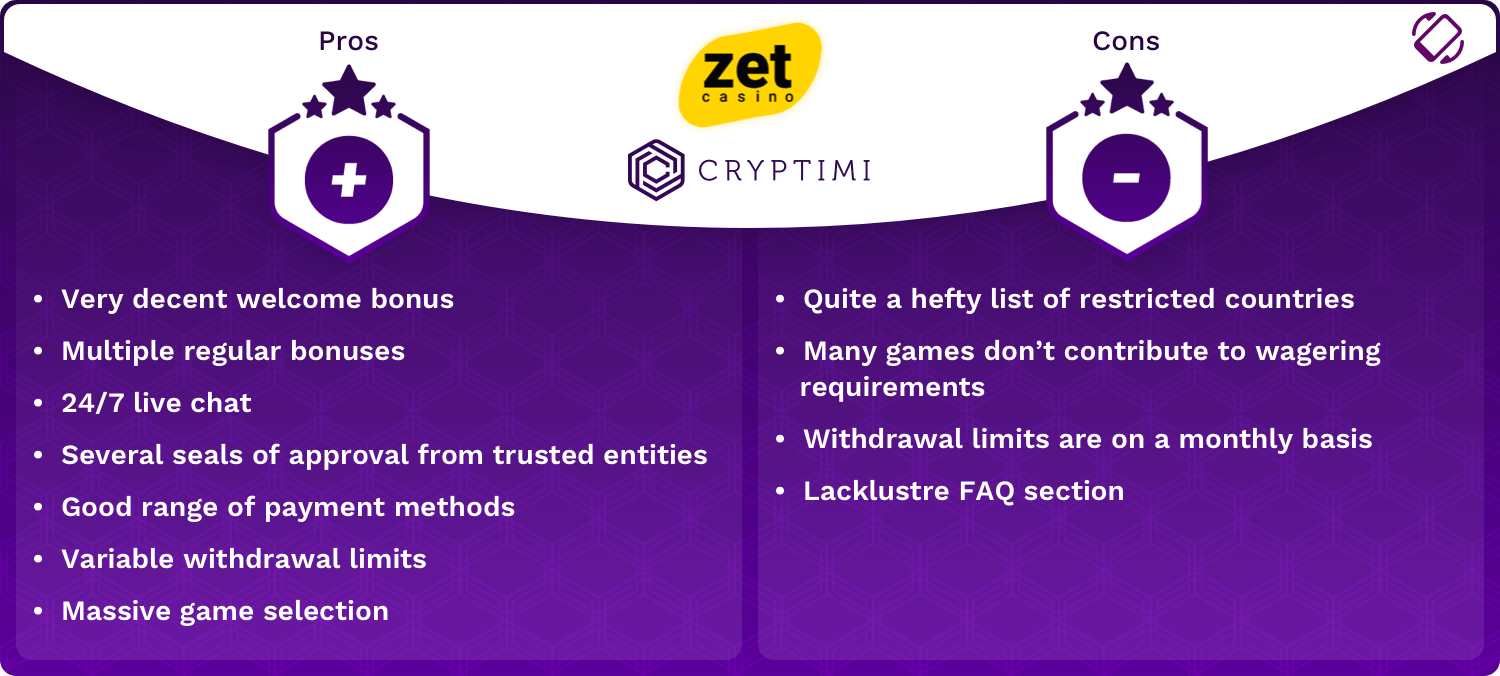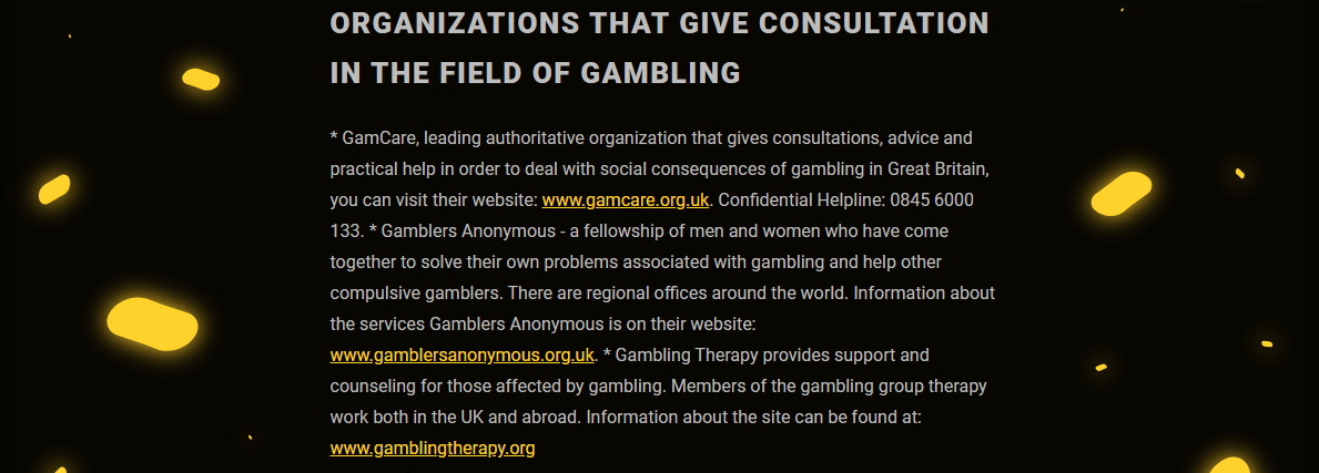 A triste verdade é que os jogos podem ficar viciantes, e é aí que as coisas começam a azedo; Portanto, qualquer cassino que valha seu sal deve fornecer medidas para ajudar seus jogadores de se encontrarem nessa situação. Felizmente, Zetcasino tem um Página de jogos responsável dedicada Isso fornece informações sobre sintomas de jogos de problemas, organizações que ajudam os jogadores problemáticos e medidas para combater os jogos de problemas!