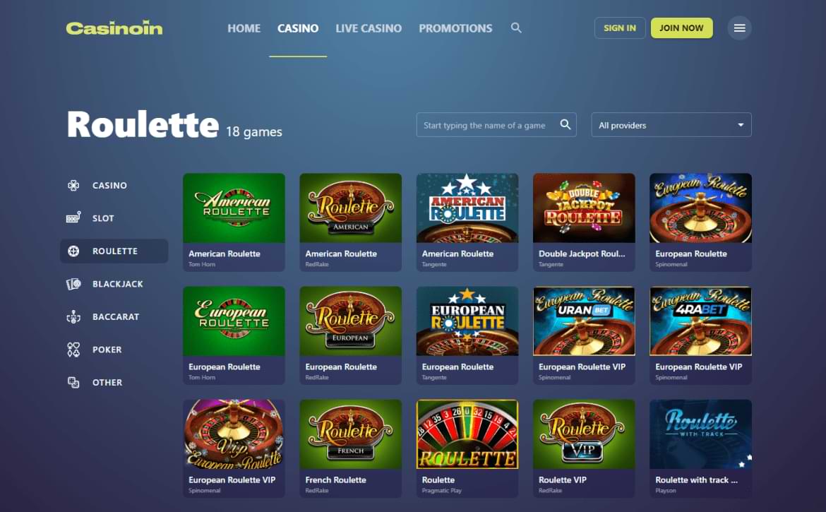 Se você está procurando uma experiência de roleta ainda mais imersiva e realista, pode ir para a seção de cassino ao vivo. Apresentando uma extensa seleção de jogos da Evolution Gaming e outros fornecedores, você terá a oportunidade de experimentar dezenas de diferentes jogos de roda e mesa. Os títulos populares disponíveis no Casinoin incluem a roleta da evolução, a roleta imersiva e a roleta de bola dupla.