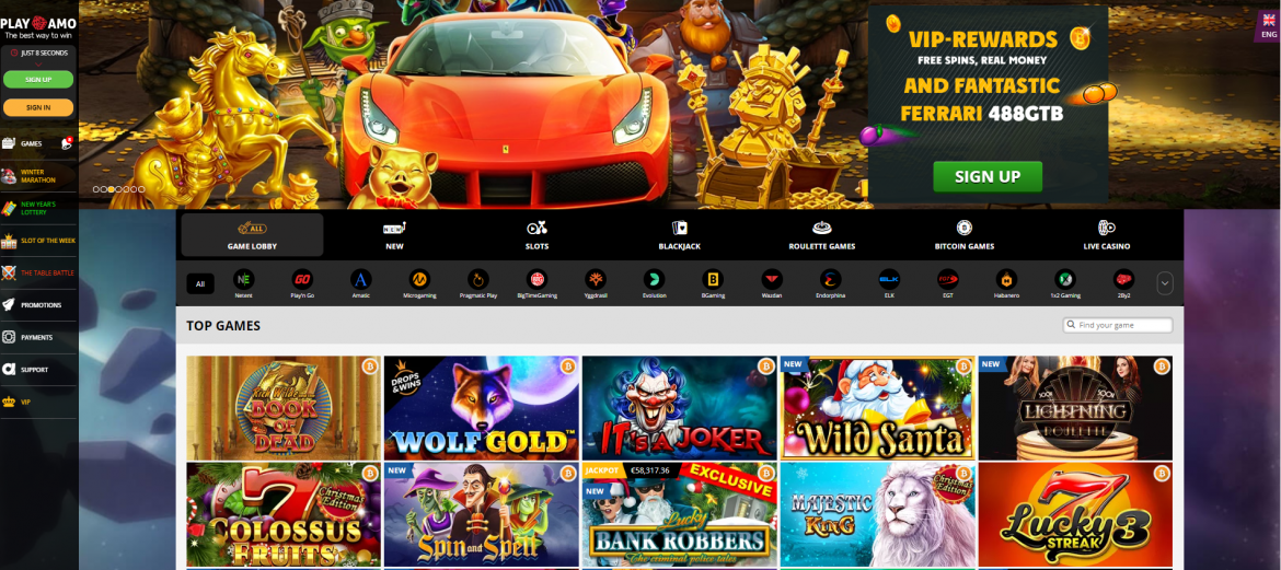 Playamo Casino é o cassino online para jogadores que procuram luxo, estilo e sofisticação. Projetado especialmente para rolos altos, O cassino apresenta uma variedade de promoções e ofertas que são um corte acima da competição. A dessas promoções mais significativa são as recompensas que você pode esperar ao ingressar no programa Playamo VIP. Além de oferecer até € 10.000 em dinheiro para membros de alto nível, o cassino também oferece uma Ferrari grátis a qualquer membro que atinja o nível 10 no programa.
