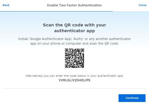 Sua conta é agora protegida com 2fa e não será possível fazer login ou processar qualquer transação sem o código de autenticação de uso único.