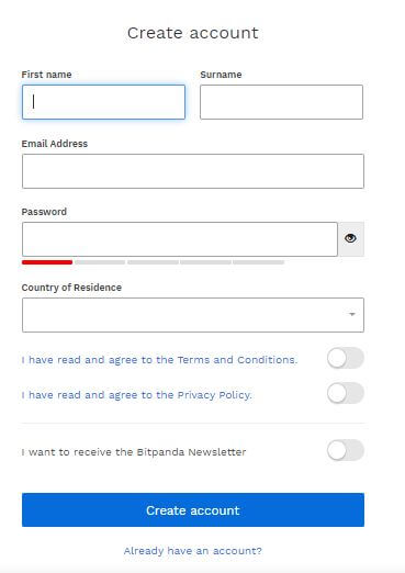Como indivíduo, você pode Crie a sua conta aqui Em Bitpanda, fornecendo suas informações pessoais, como seu nome, e -mail etc. Se a conta não for verificada, você só poderá depositar ou enviar criptomoedas para outras carteiras. Para comprar, vender ou comercializar criptomoedas, A conta deve primeiro ser verificada enviando documentos legais.