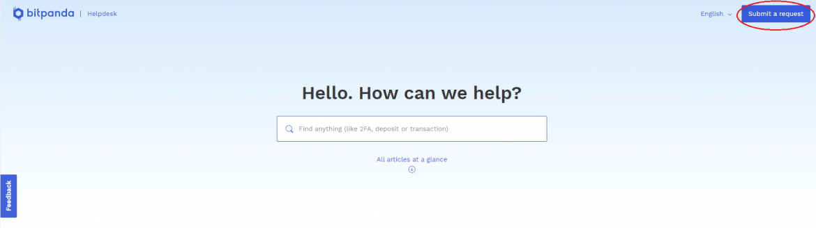 O Bitpanda Exchange fornece Suporte 24/7 para seus clientes. Para consultas gerais, os usuários podem se referir aos artigos na seção básica do 'conhecimento' (depois de clicar na seção 'Ajuda'). Se um usuário tiver problemas com a conta e/ou transação, poderá entrar em contato com a equipe de suporte clicando no botão "Ajuda" na página de destino do site e criando e enviando uma solicitação, conforme mostrado nas imagens: