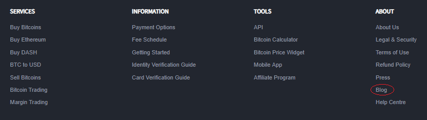 Para saber as informações mais recentes sobre o Cex.io, confira o blog oficial rolando sua página inicial: