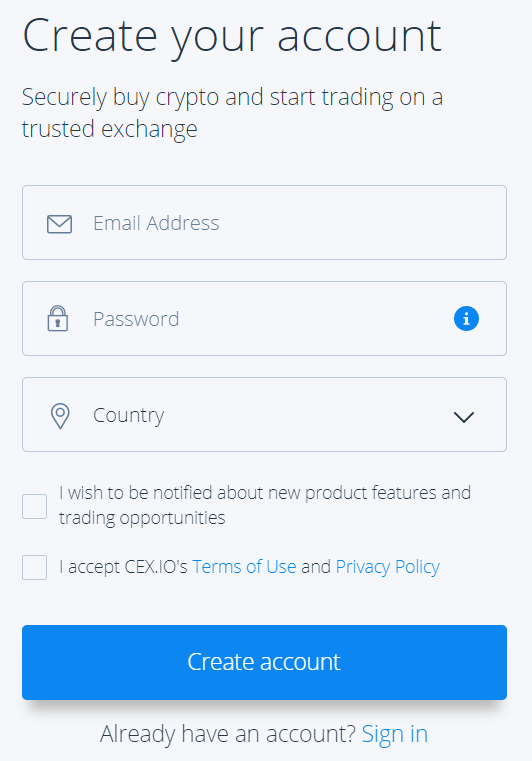 Cex.io oferece dois tipos de contas para os usuários: Individual e Corporativa. (Não vamos nos preocupar com a conta corporativa pelo tempo). Criar uma conta no Cex.io é muito simples e pode ser concluído em menos de 5 minutos. Cex.io Suporta redefinição de senha Portanto, caso você tenha esquecido, ainda pode acessar sua conta e fundos. Instruções sobre como redefinir sua senha podem ser encontradas abaixo.