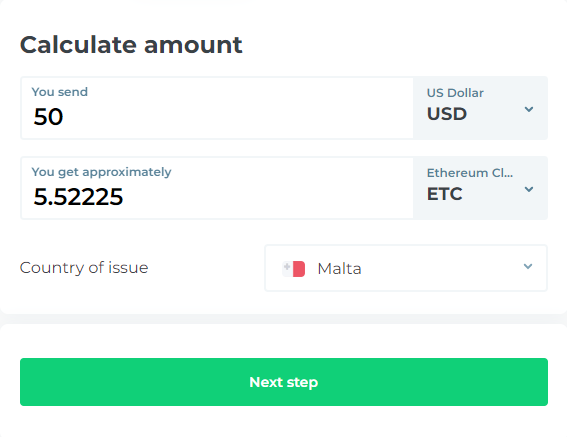 Este exemplo mostra Como comprar o Ethereum Classic (Etc) em Changelly usando um cartão de crédito.
