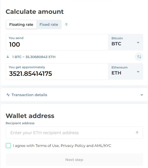 Depois que seu Bitcoin (BTC) for recebido pela Changelly, o Ethereum equivalente (ETH) será enviado ao endereço da carteira do destinatário mencionado na transação. Geralmente, esse processo leva apenas de 5 a 30 minutos e você receberá as moedas assim que a transação for concluída.