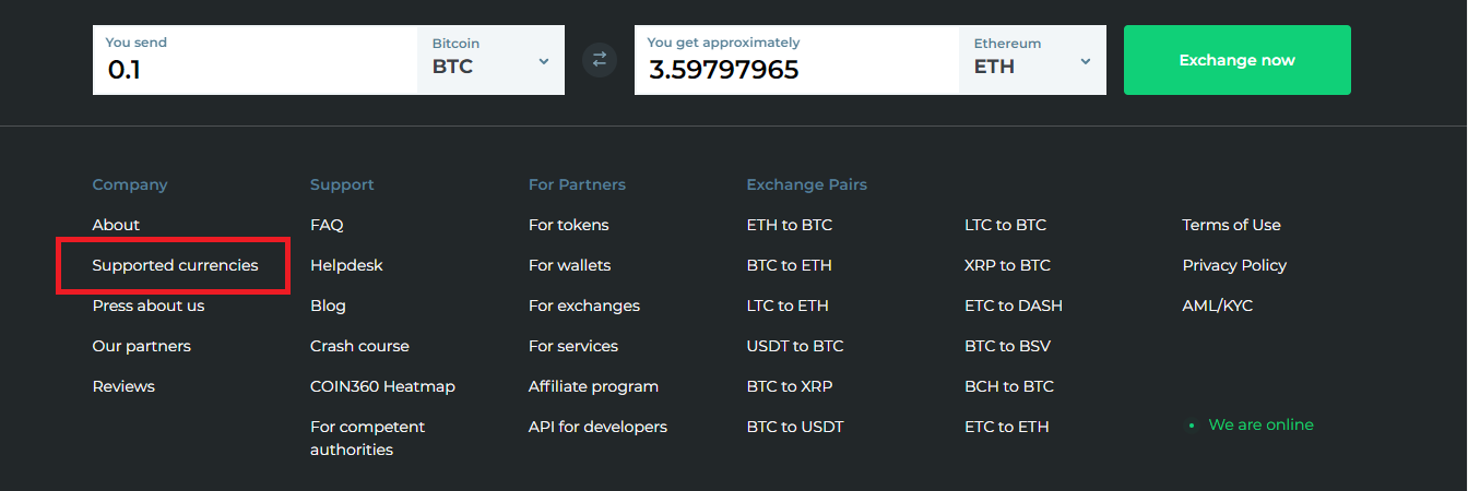 Para obter a lista completa de todas as criptomoedas suportadas por Changelly, gentilmente Visite a página inicial deles e role para o fundo: