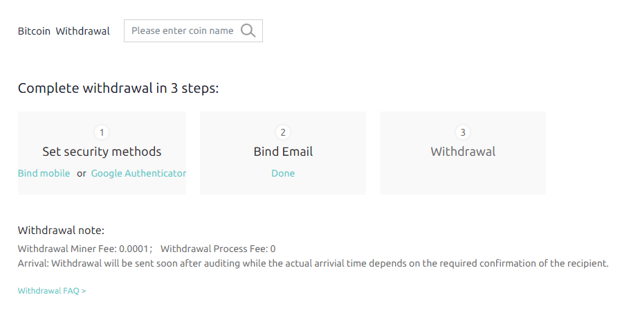 Coinex oferece três tipos de retiradas, a saber::