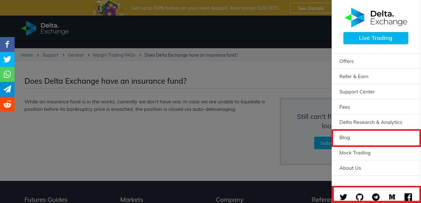 À medida que a Delta Exchange continua a crescer e se desenvolver, provavelmente irá Introduzir novos recursos e moedas suportadas. Atualmente, as principais novidades giram em torno de um fundo de seguro Para cargos cujo preço de falência é violado antes que a plataforma tenha tempo para liquidar uma posição. Por último, mas certamente não menos importante, essa plataforma de negociação planeja lançar em breve opções, taxas de juros e produtos de volatilidade.