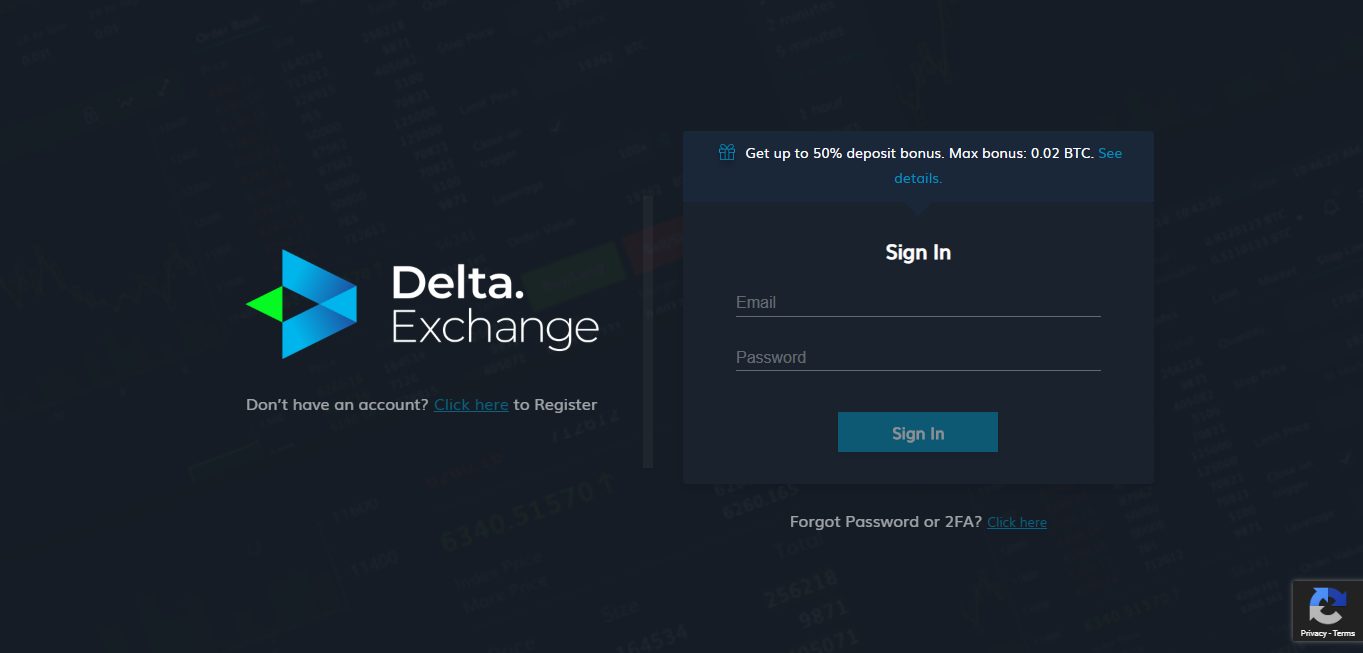 Depois de abrir uma conta do Delta Exchange, você pode fazer login da seguinte maneira: