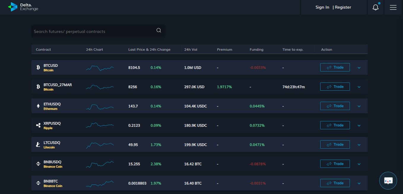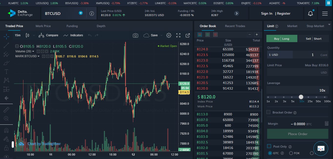 A Delta é uma plataforma de negociação de futuros de criptomoedas que oferece uma variedade de mercados para investir. Para usar a troca, Os usuários já devem possuir bitcoin. Além disso, diferentemente das trocas tradicionais de criptomoedas, o Delta não facilita a troca de tokens. Em vez disso, os usuários trocam derivados de bitcoin e altcoin. Isso faz da troca mais adequado para comerciantes com experiência investindo em instrumentos financeiros avançados.
