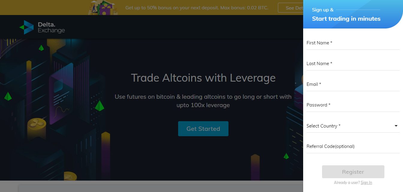 Criar uma nova conta Delta Exchange é extremamente rápida e simples. Tudo que você precisa fazer é:
