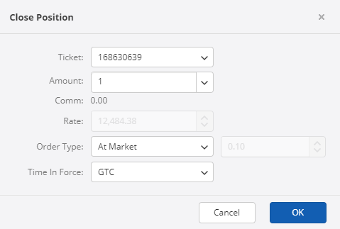 Depois que seu pedido for processado, a posição será fechada e Quaisquer taxas relevantes cobradas ao seu saldo. Os fundos restantes serão depositados na sua conta FXCM, prontos para serem reinvestidos ou para serem retirados.