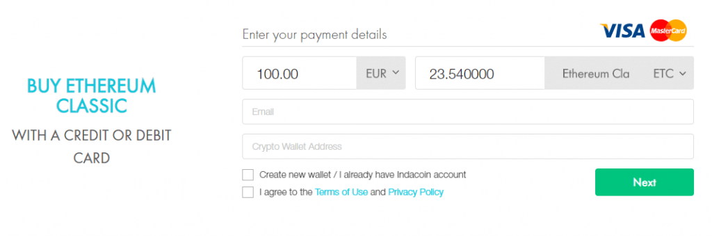 Siga as etapas abaixo para Compre o Ethereum Classic (Etc) da troca indacoin usando um cartão de crédito ou débito: