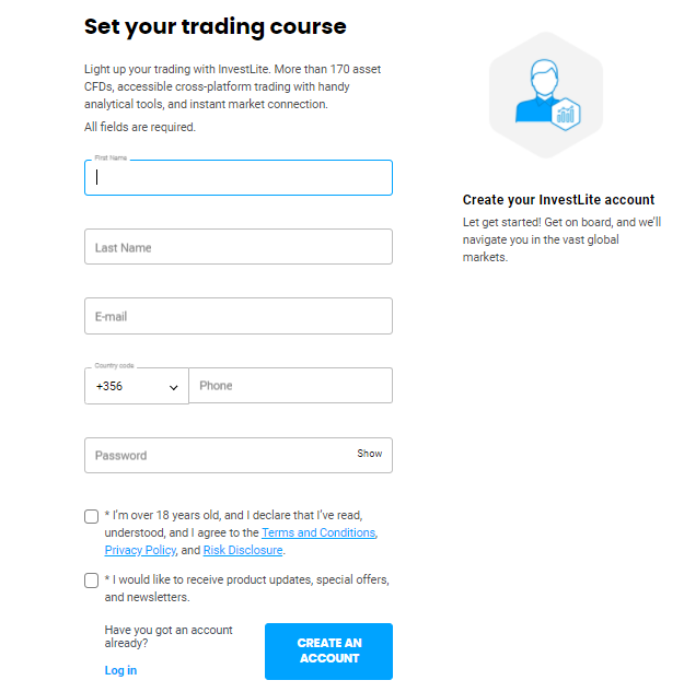 Para abrir sua conta Investlite, tudo o que você precisa fazer é: