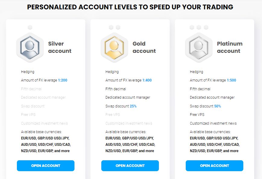 Essas contas fornecem níveis variados de benefícios, incluindo aumento dos descontos de alavancagem e taxas. A conta Platinum também fornece acesso a alertas de notícias e um gerente de conta dedicado.