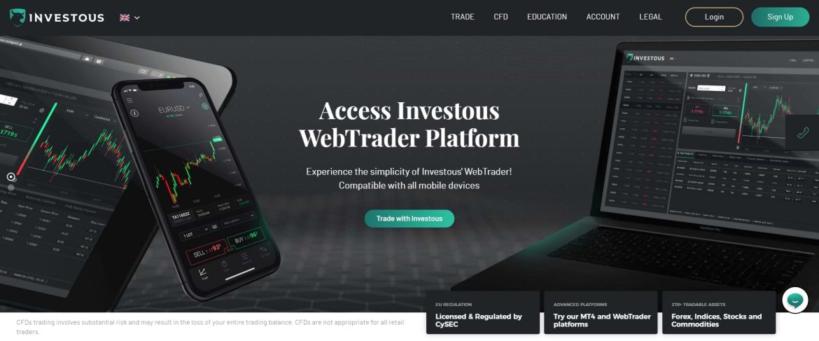 Investous é relativamente Nova plataforma de negociação Isso oferece negociação de CFD em uma ampla variedade de ativos diferentes. No momento da redação deste artigo, ele suporta 270 instrumentos financeiros Em diferentes classes, como forex, ações, mercadorias, índices e criptomoedas. Na UE, o Investous é operado pela F1Markets Limited, que é baseado em Chipre e regulado por Cysec (Comissão de Valores Mobiliários de Chipre). Fora da UE, é operada pela iOS Invesments Limited, uma empresa de investimentos em Belize autorizada e regulamentada pela Comissão Internacional de Serviços Financeiros de Belize.