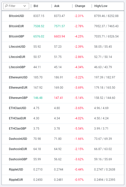 Investous oferece negociação de CFD em Uma grande variedade de ativos financeiros incluindo forex, ações, índices, mercadorias e criptomoedas. Ele suporta todas as principais criptomoedas, como Bitcoin, Ethereum, Litecoin, Ripple, Ethereum Classic, Monero e Bitcoin Gold. Para obter mais informações sobre a lista de todos os instrumentos disponíveis no Investous, Confira o site deles.