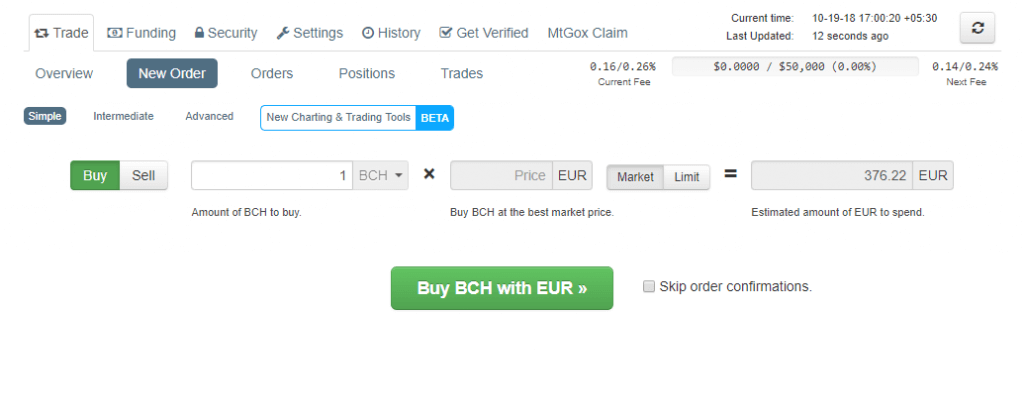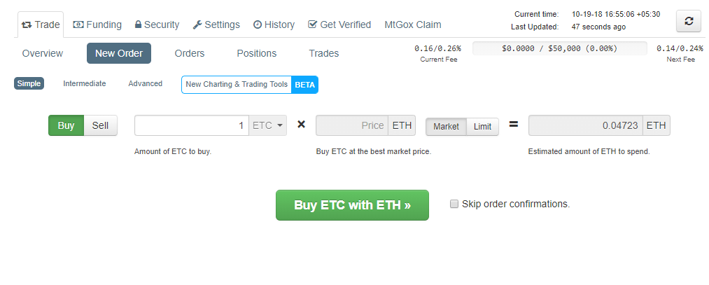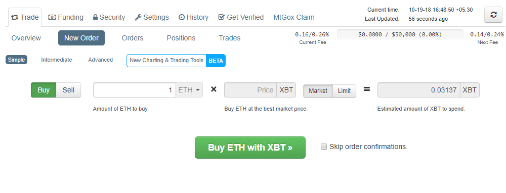 Na seção anterior, o procedimento para a compra de Bitcoins usando EUR foi explicado em detalhes. Agora, nesta seção, vamos ver como comprar o Ethereum usando Bitcoins. (Eth/xbt)