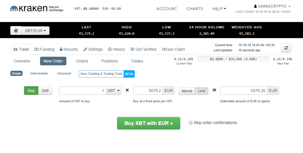 Para criar uma conta básica no Kraken Exchange, os usuários não precisam enviar nenhum documento e podem começar a negociar imediatamente após abrir a conta. Não demorará mais de alguns minutos para abrir sua conta no Kraken, pois fornece uma interface simples e fácil de usar.