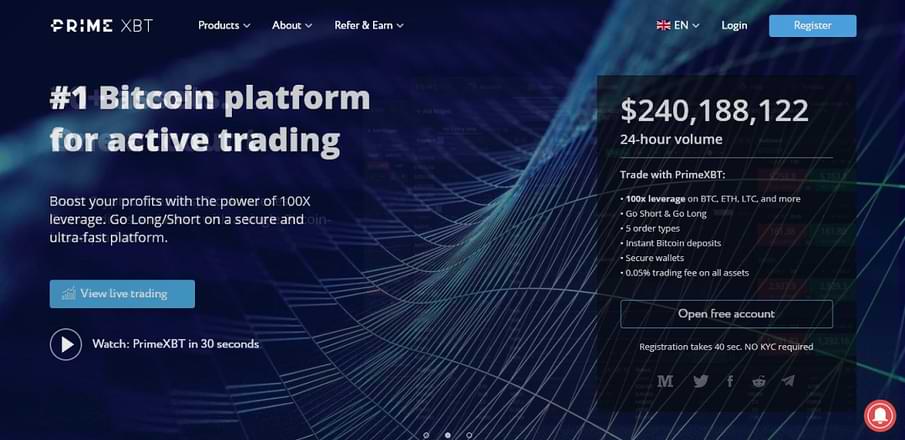 A plataforma de negociação PrimeXBT oferece aos usuários uma plataforma única e centralizada para negociar criptomoedas, commodities, forex e vários outros mercados. Em criptomoedas, PrimeXBT oferece alavancagem de até 100x, permitindo que você negocie em BTC, ETH, LTC, EOS e XRP. Tudo ganhos ou perdas são pagos no BTC, como essa é a moeda base da plataforma.