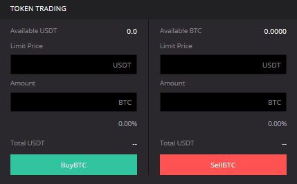 - Em seguida, localize a seção intitulada Negociação de token no lado inferior direito da tela. Digite o valor do BTC que você gostaria de comprar ou o valor do USDT que gostaria de vender.
