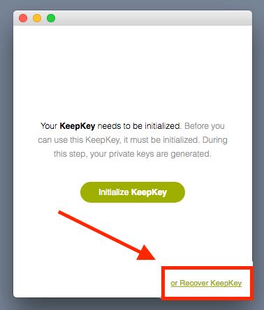 - abra o aplicativo keepkey client e clique no lDentrok "recuperar keepkey", que é exibido na parte Dentroferior da tela.
