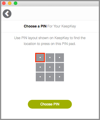 As capturas de tela são mostradas apenas para fins de ilustração. O produto real pode variar. - Em seguida, você deve Escolha um alfinete para o seu dispositivo. o comprimento do pDentroo pode variar de 1 a 9 dígitos. no seu computador, a matriz do teclado com pontos vazios será mostrada. as atribuições de chave correspondentes serão mostradas apenas no dispositivo keepkey. digite o pDentroo duas vezes e clique na opção escolha pDentro. (ao defDentroir o código do pDentro, não use números como ano de nascimento, data etc. tente escolher um código pDentro exclusivo):