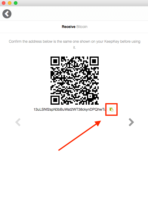 As capturas de tela são mostradas apenas para fins de ilustração. O produto real pode variar. - Você verá o endereço de recebimento exibido na tela. Você deve garantir que o endereço exibido na tela e o dispositivo KeepKey sejam iguais.