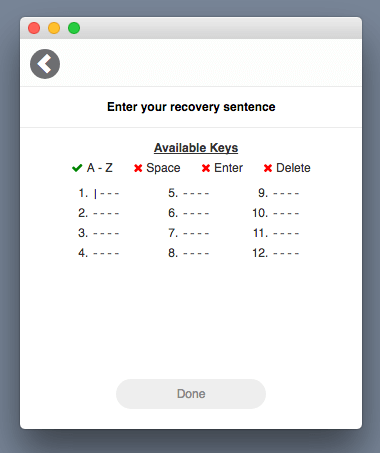 - digite a semente de recuperação de 12 palavras do seu dispositivo antigo no novo dispositivo. depois de Dentroserir todas as palavras, clique no botão "enter" na tela.