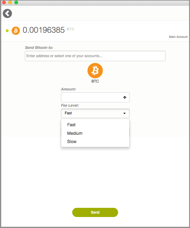 - Digite a quantidade de criptomoeda que você gostaria de enviar e escolha o nível da transação (rápido/médio/lento). Transações mais rápidas requerem altas taxas de transação enquanto as transações mais lentas exigem apenas pequenas taxas, mas levam mais tempo para concluir a transação.