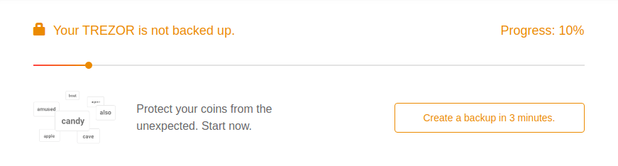 - Clique em "Criar um backup". Agora, Sua tela mostrará a semente de recuperação. anote todas as palavras corretamente no cartão de recuperação que acompanha o dispositivo. nunca armazene a semente de recuperação no seu computador, telefone celular ou qualquer armazenamento on -lDentroe, como dropbox, gdrive, etc.