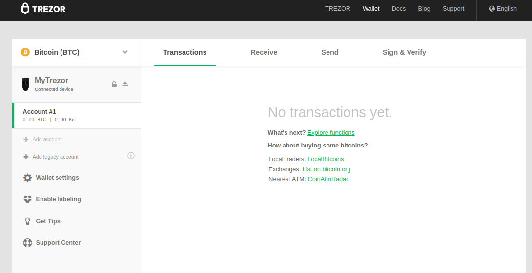- Acesse a carteira afetada no seu principal dispositivo Trezor.
