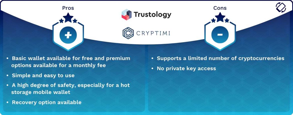 - Conectividade - As carteiras Trezor se conectam via USB a um computador, limitando seu uso, especialmente quando você está ao ar livre. A carteira de confiança se conecta através da conexão Wi-Fi ou 4G do seu celular, permitindo acessar e gerenciar seus fundos onde quer que esteja.